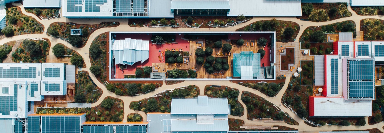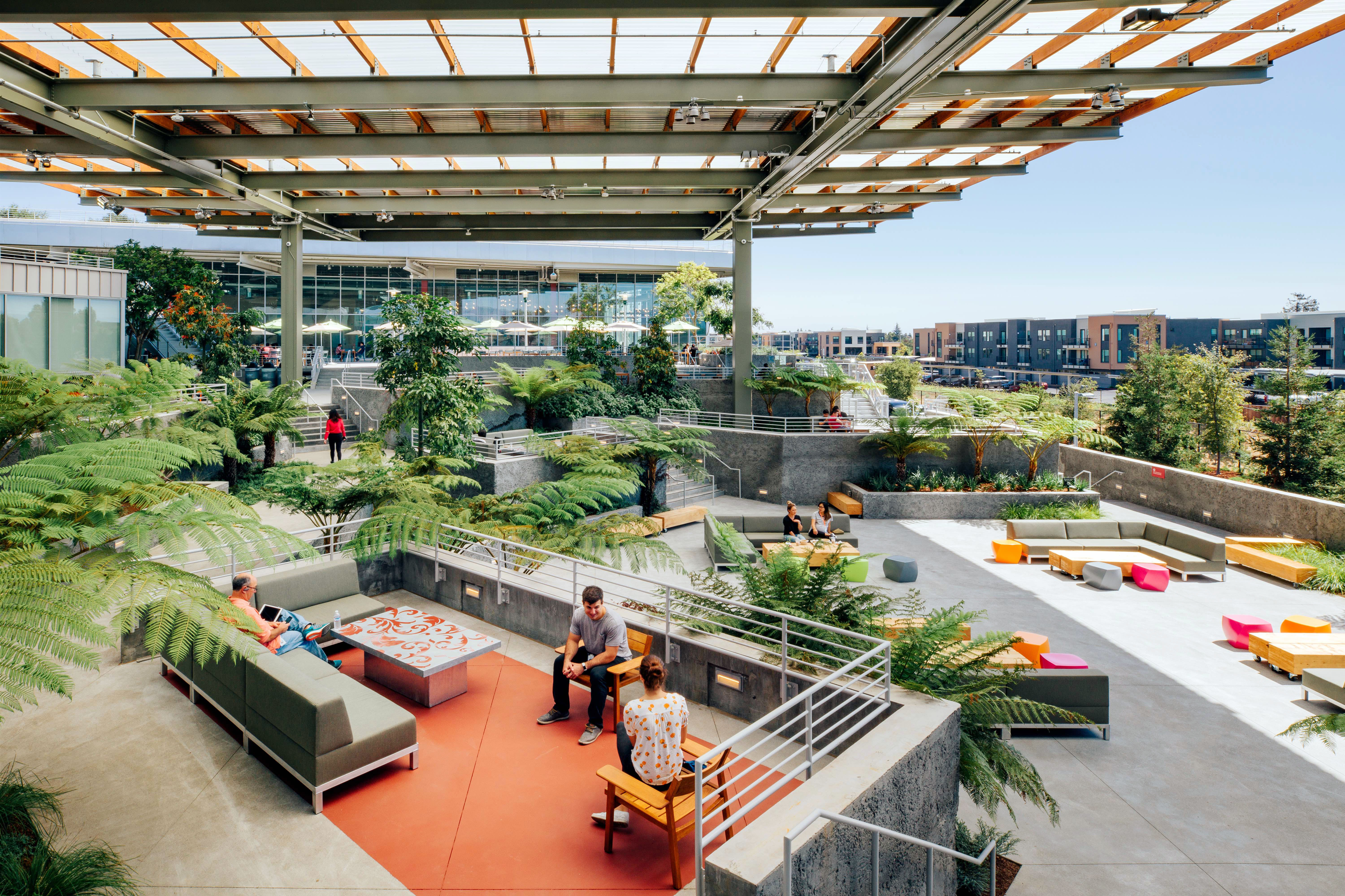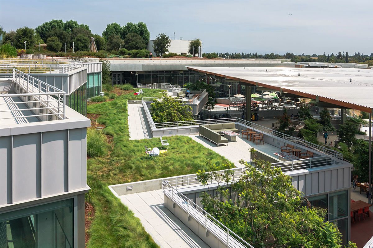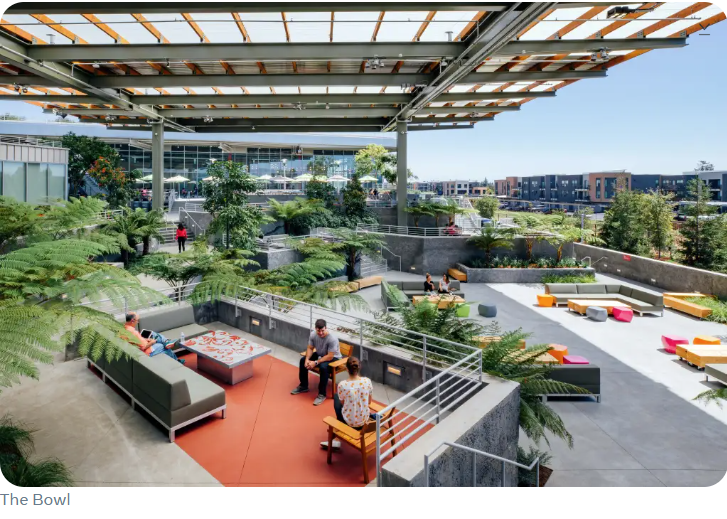 Featured on home page, Large-scale, sustainable office buildings at Meta’s headquarters in Menlo Park, California, designed by architect Frank Gehry to promote collaboration and employee well-being. They feature expansive rooftop gardens, open workspaces, and are known for their LEED Platinum certification and innovative”start-up” style architecture