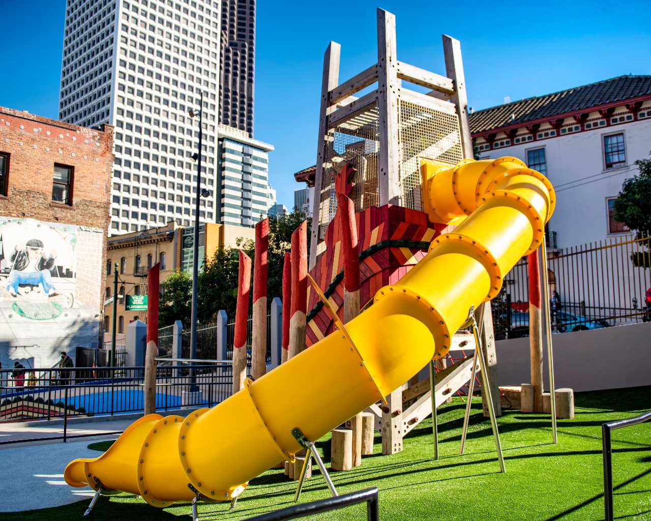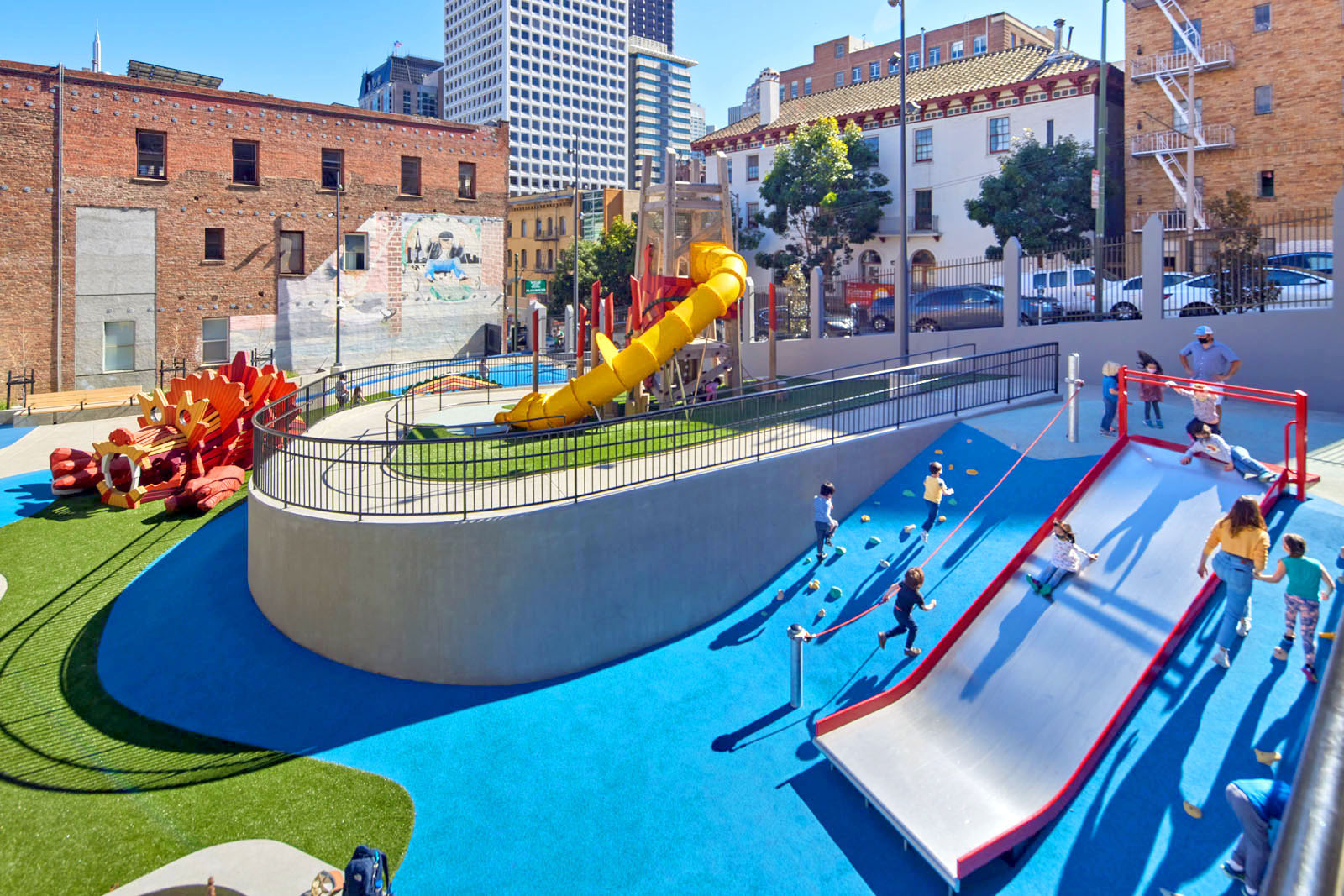 A renovated, multi-level recreational space in San Francisco’s Chinatown (830 Sacramento Street) named after a local Chinese-American basketball legend. Opened in 1927 and renovated in 2021, it features a unique, modern, dragon-and-phoenix-themed, multi-level layout packed into a small area, including a rooftop basketball court, tennis & volleyball courts, and sand-floor play areas.